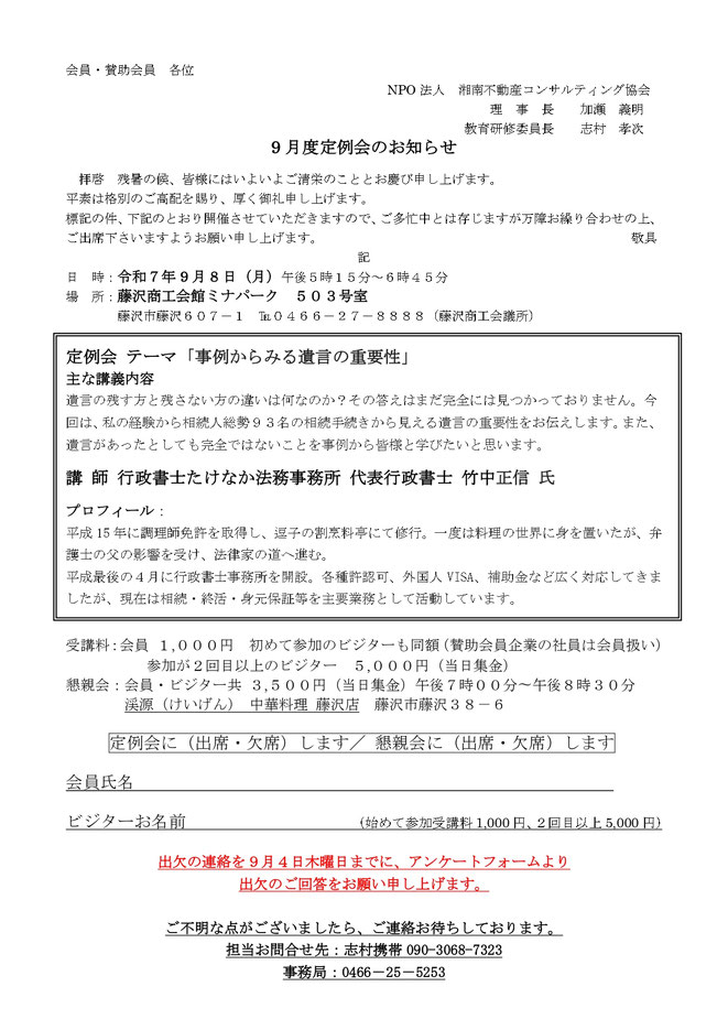 【所属団体】湘南不動産コンサルティング協会 9月定例会